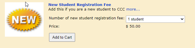 *NEW STUDENTS: Manually add the registration fee to the cart before checkout.